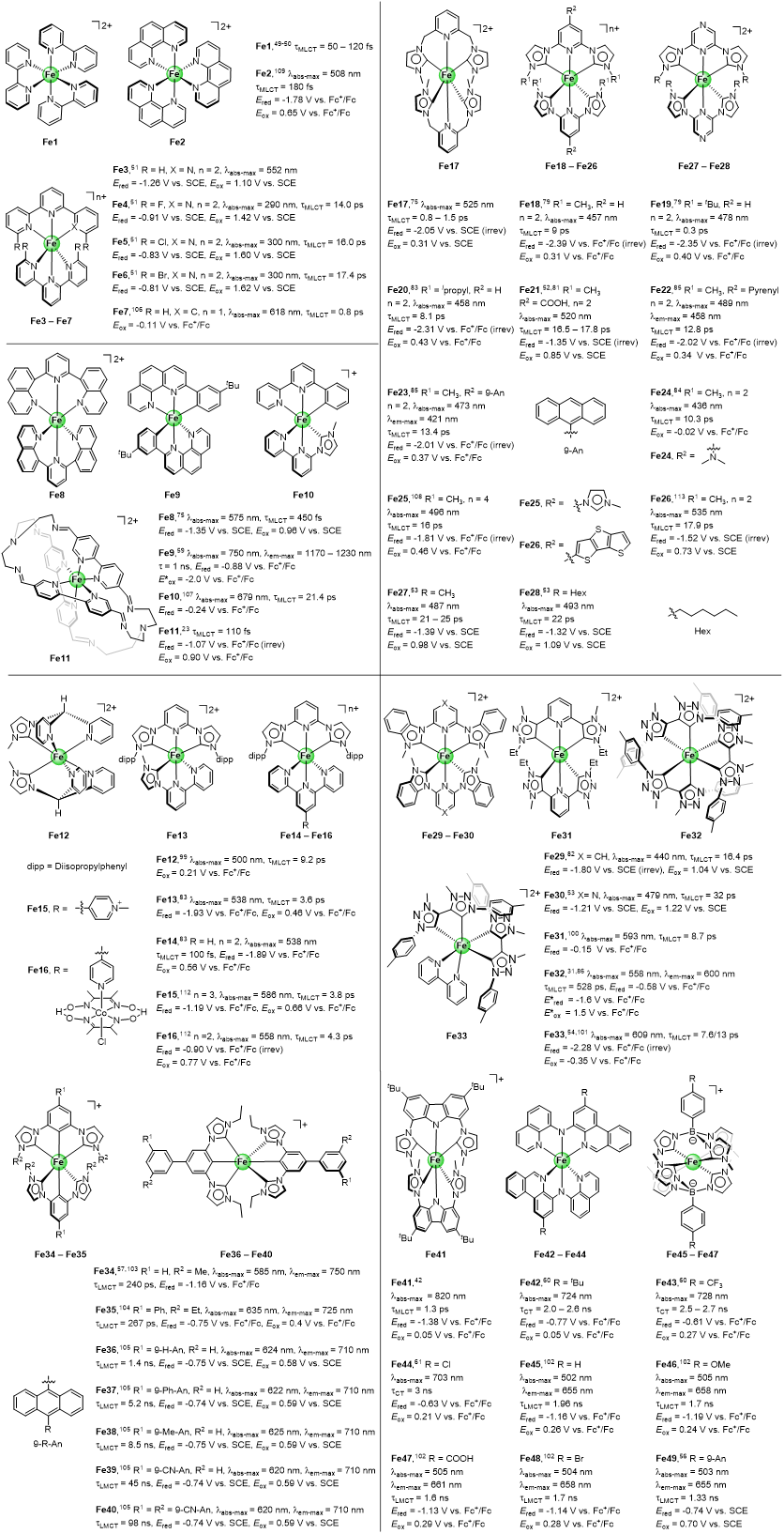 图4 Fe配合物的光物理和电化学性质(来源:Chin. J. Chem.)