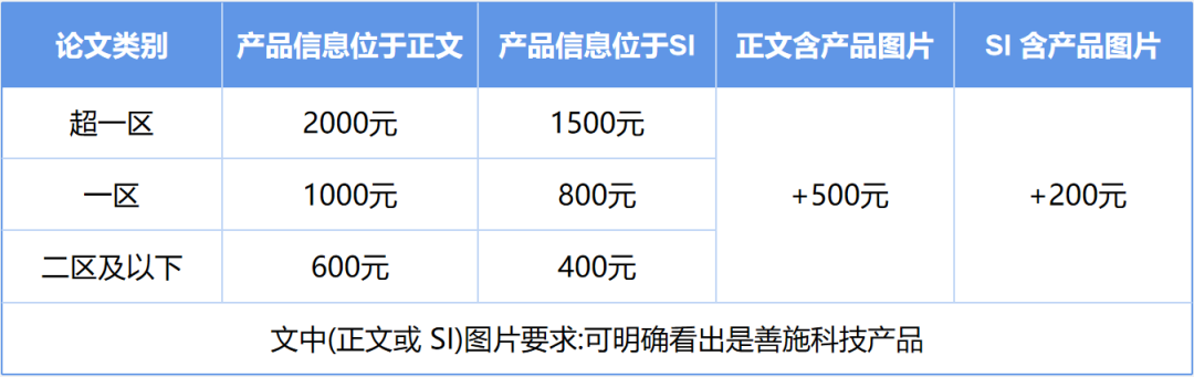 4.参评规则:依据当年度发表文章所在期刊的分区水平及善施产品在论文中的体现程度进行评选,获评的论文工作,善施科技微信公众号会配合进行宣传。