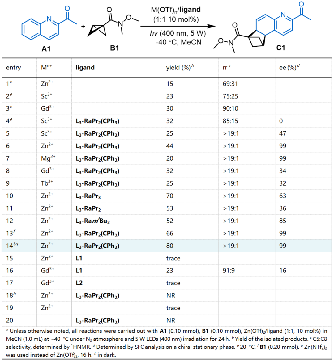 表1. 喹啉与BCB反应条件筛选(图片来源:J. Am. Chem. Soc.)
