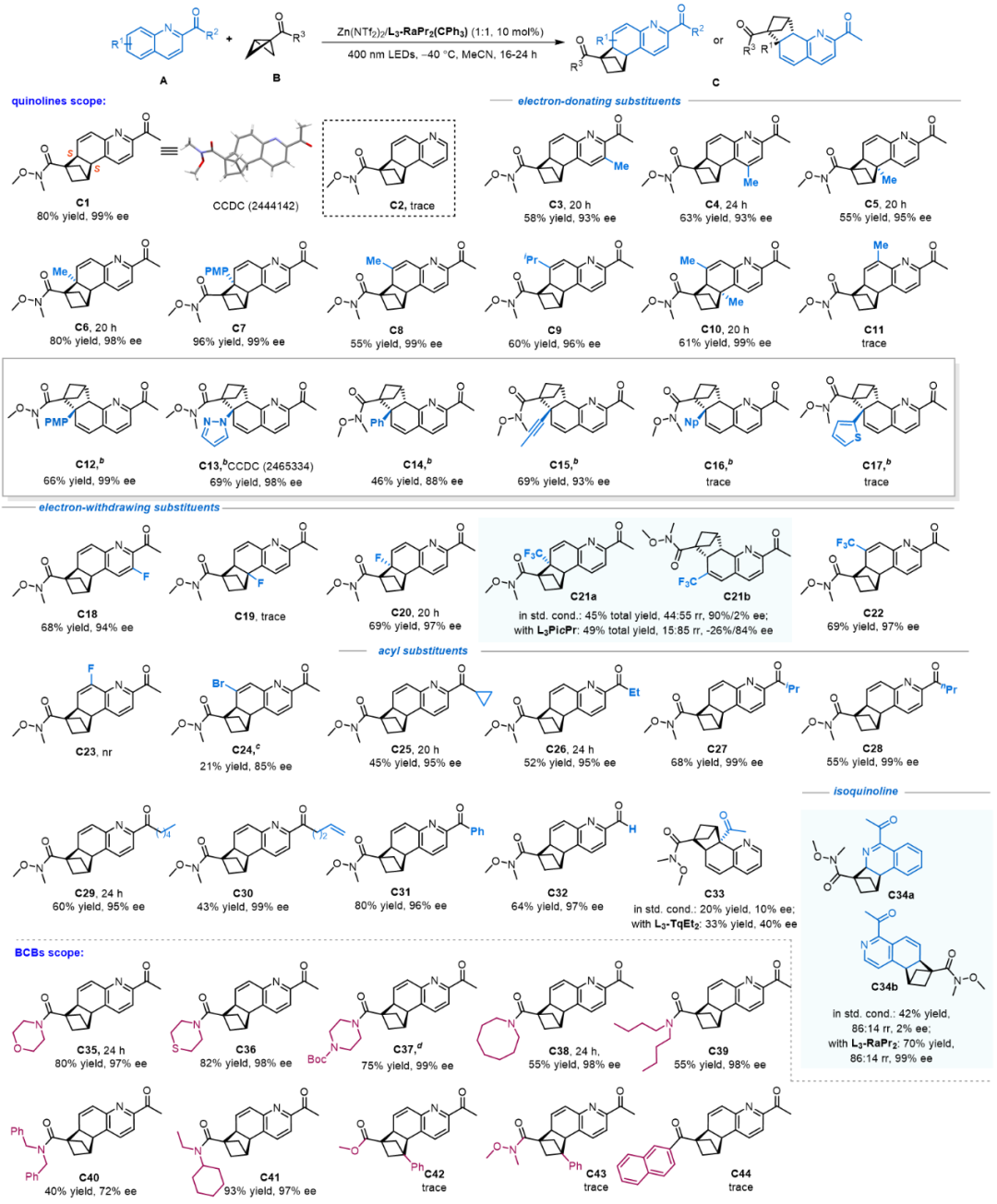图3. 喹啉与BCB底物扩展(图片来源:J. Am. Chem. Soc.)