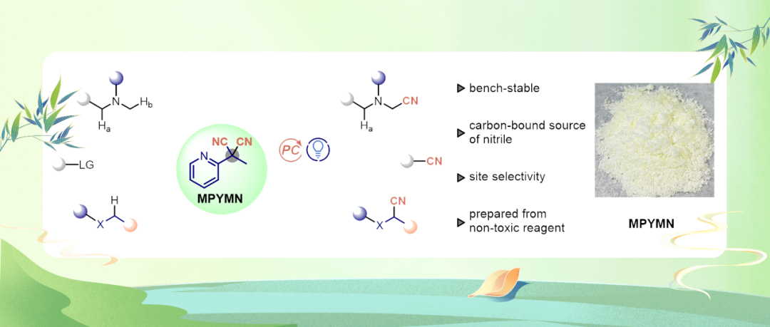 【Green Chem.】兰州大学许鹏飞教授: 2-甲基-2-(吡啶-2-基)丙二腈:用于光催化氰化反应的位点选择性氰基转移试剂