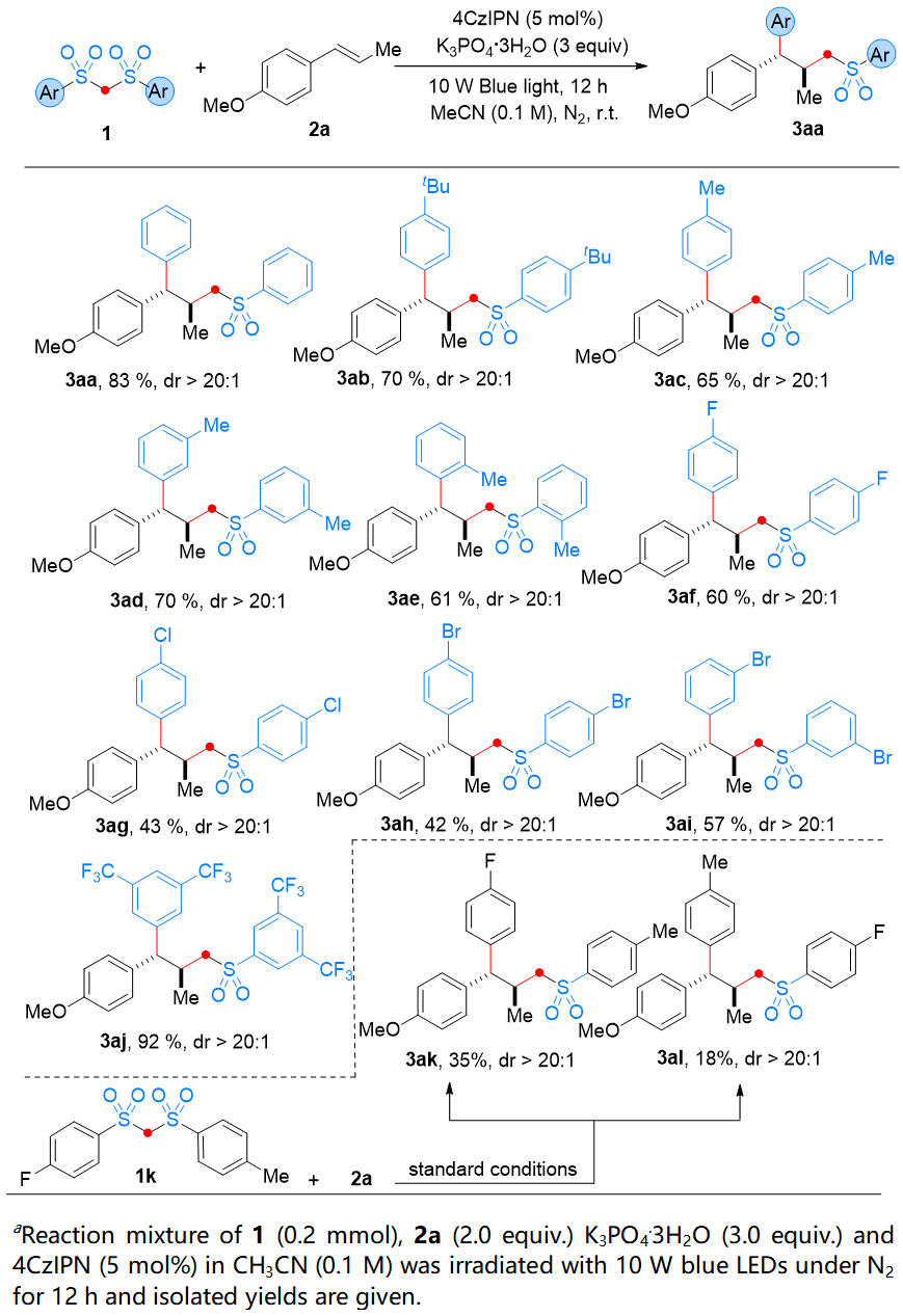 图2. 双砜的底物范围研究(来源:Org. Lett.)