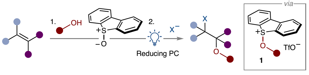 Activation of alcohols as sulfonium salts in the photocatalytic hetero-difunctionalization of alkenes